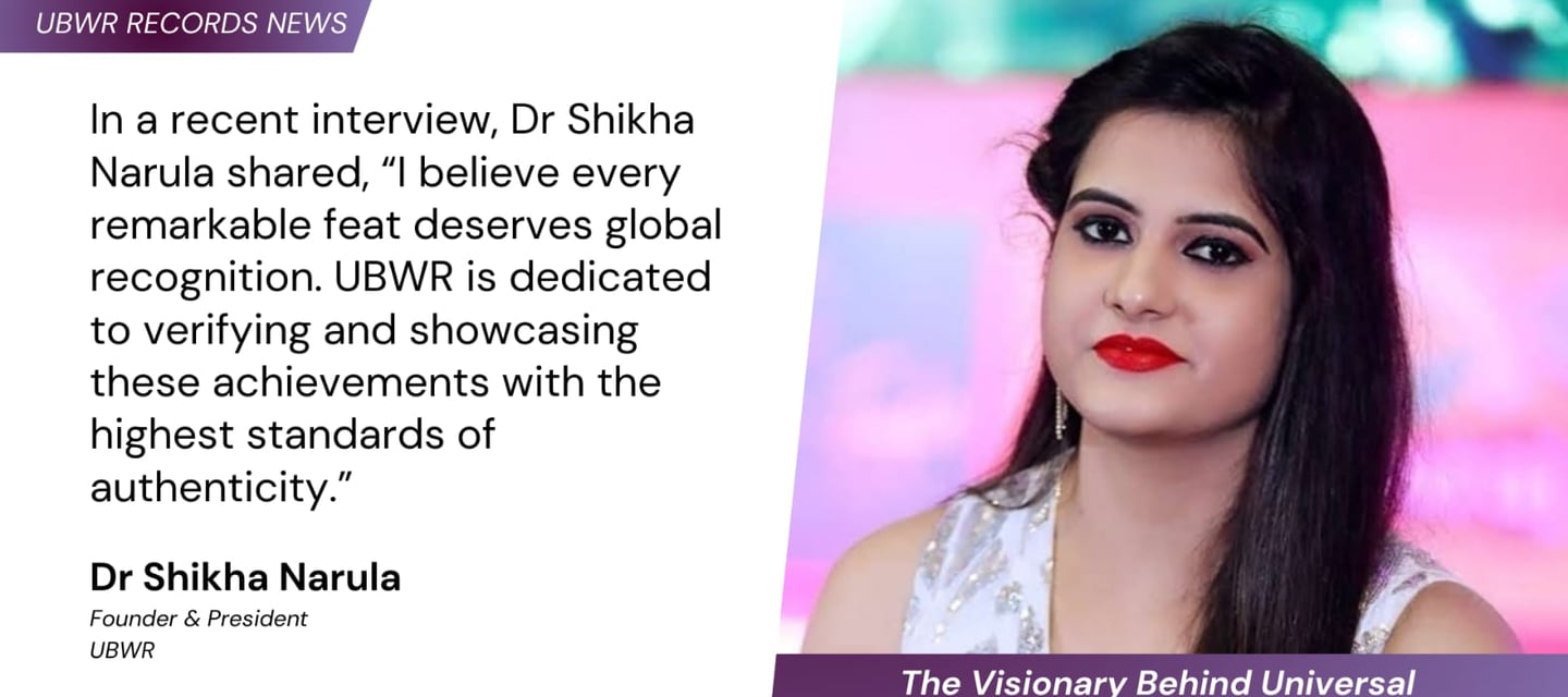 Universal Book of World Records (UBWR) is more than just a record-keeping organization—it’s a global platform dedicated to celebrating human excellence and extraordinary achievements. Our mission is to transform exceptional feats into certified legacies by upholding the highest standards of authenticity, verification, and global recognition.